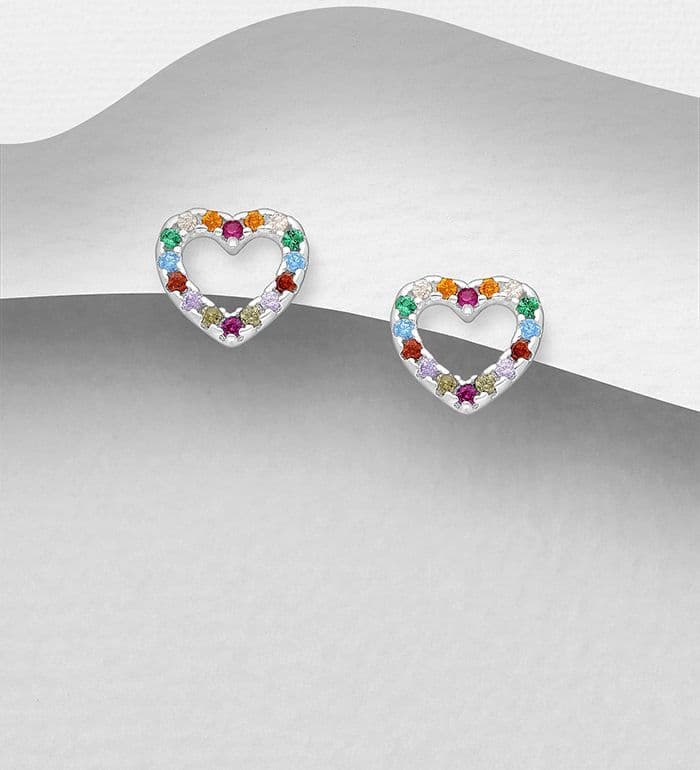925 Sterling Silver Heart Earrings with Colourful CZ Simulated Diamonds