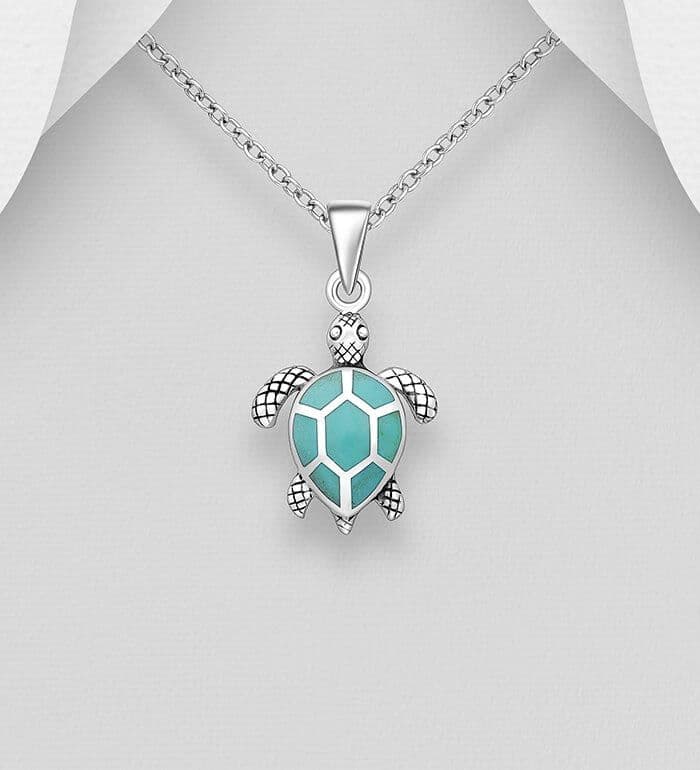 Add a touch of elegance with our 925 Sterling Silver Oxidized Turtle Pendant & Chain adorned with stunning blue resin. Crafted with care and quality, this pendant is the perfect accessory to elevate any outfit.