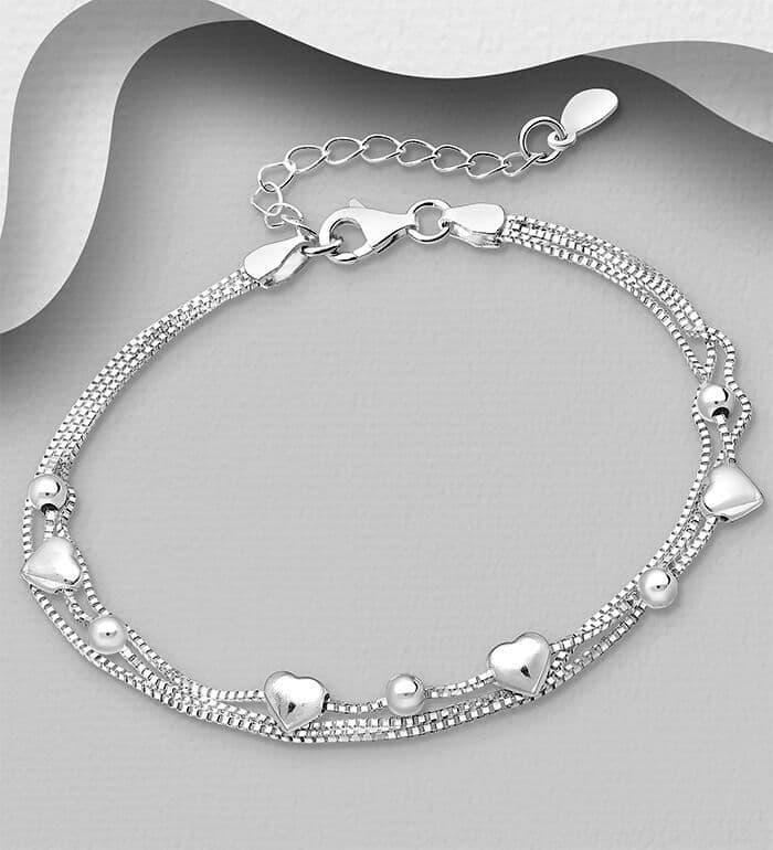Title: 925 Sterling Silver Multi-Strand Bracelets Set with Hearts