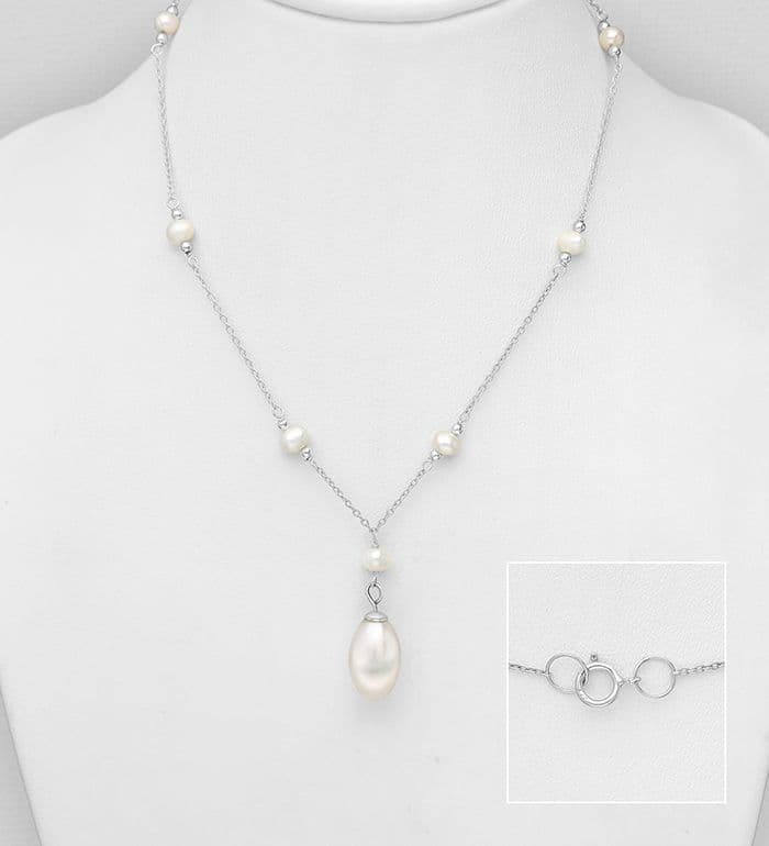 Add a touch of elegance to your style with our 925 Sterling Silver Necklace adorned with a stunning droplet of lustrous Cultured Freshwater Pearls. This necklace is a must-have for any accessory collection. Made with the highest quality materials, it will be a timeless addition to your wardrobe. Suitable for all occasions, this necklace is the perfect combination of sophistication and charm. Order now and enhance your look with this exquisite piece.