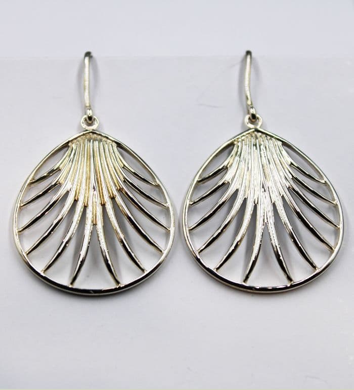 925 Sterling Silver Larger Open Work In A Shell Type Design Drop Earrings