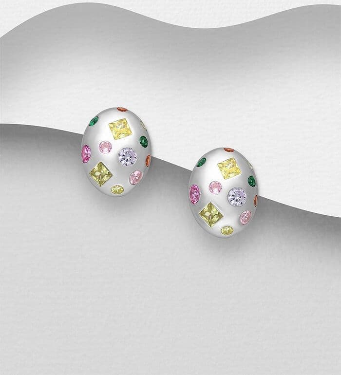 925 Sterling Silver Stud Earrings Hand-Set with Colourful Simulated Gemstones - Exclusive